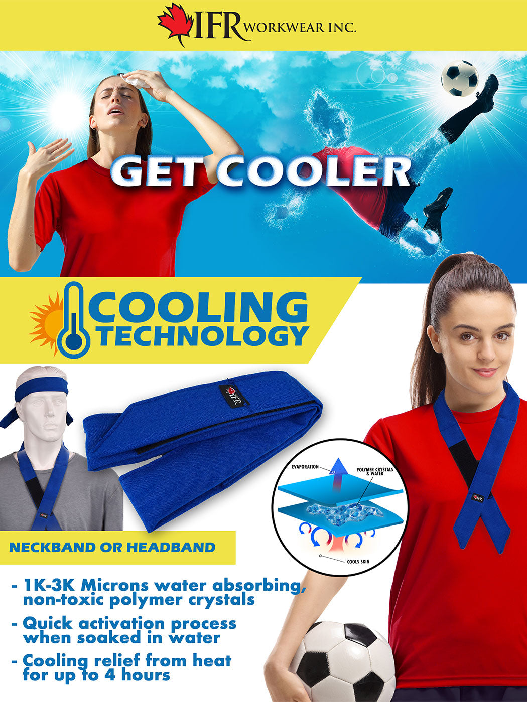 When soaked in water, the polymer crystals expand, and turn into a crystalline gel. The fabric absorbs water from the polymer, allowing the water to slowly evaporate for a cooling effect. The band stays cool and moist for hours due to the polymer’s water-retaining properties and the slow evaporation rate.