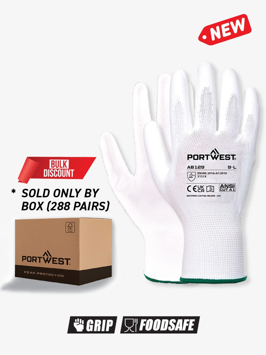 The best selling PU Palm Glove is now sold in cartons of 240 pairs for easier storage and improved value. 13 gauge liner for a perfect fit and an open back for enhanced breathability. Perfect for intricate tasks. Maximum dexterity. Smooth PU coating for increased abrasion resistance. Palm dipped to increase dexterity and ventilation. 100% breathable seamless liner.