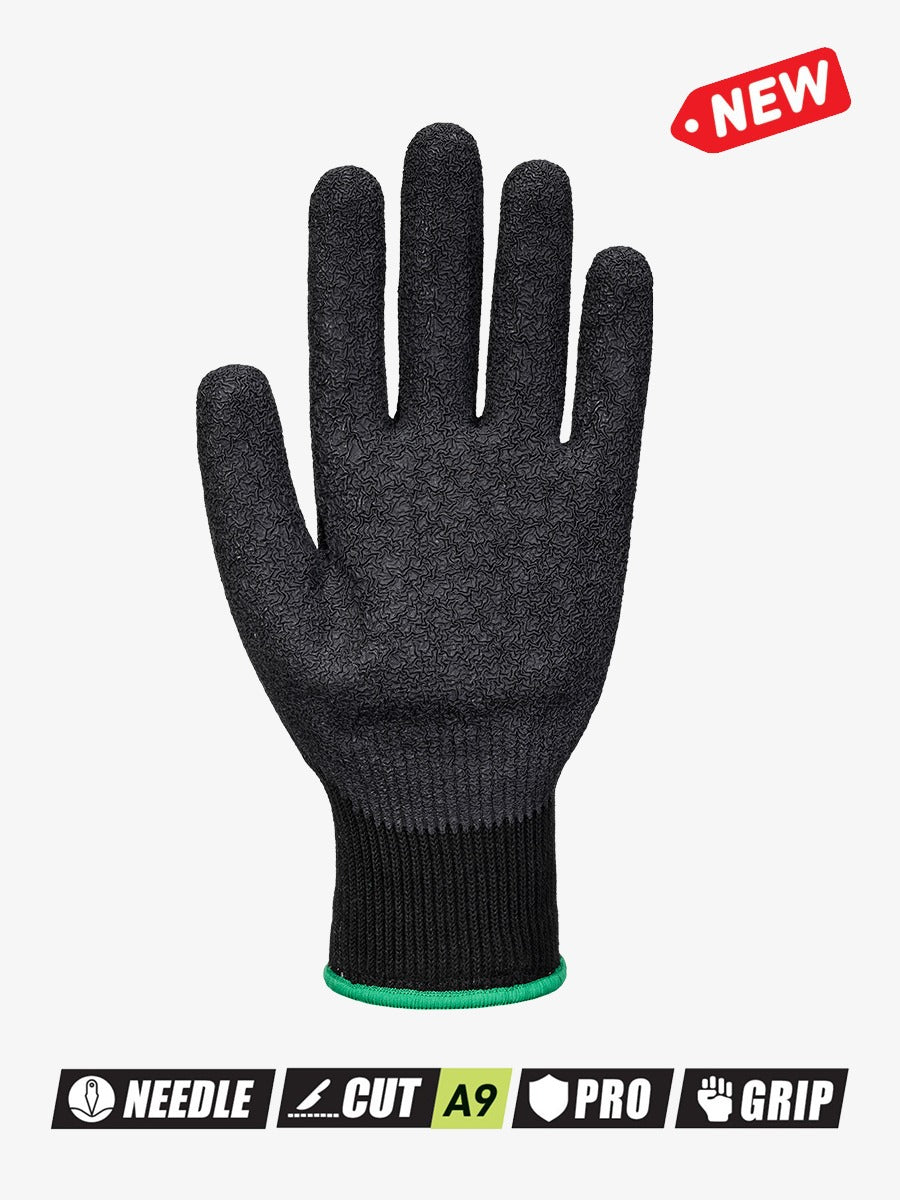 The Steel Mesh reinforcement enhances the highest cut-level ANSI A9 liner by offering superior needle protection. Its unique mesh construction delivers both maximum protection and level 5 dexterity, without compromise. The palm is equipped with impressive level 5 needle resistance, while the fingers offer level 2 protection. The Latex Crinkle finish improves grip in wet and oily environments, enabling the user to work effectively on-site and handle slippery, lubricated materials.