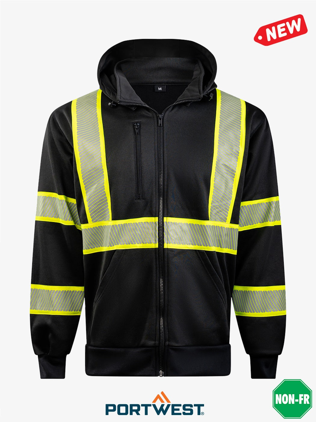 This Iona Zipped Hoodie includes poly-cotton fabric for extra comfort, elasticated rib waistband and cuffs with an adjustable hood for varied weather conditions. Other features includes a 4″ segmented reflective tape with contrast material in a H-Tape on the front and X-Back formation, two front pockets and a convenient zip pocket on the chest to secure personal items.