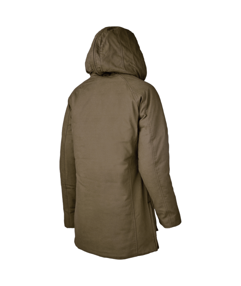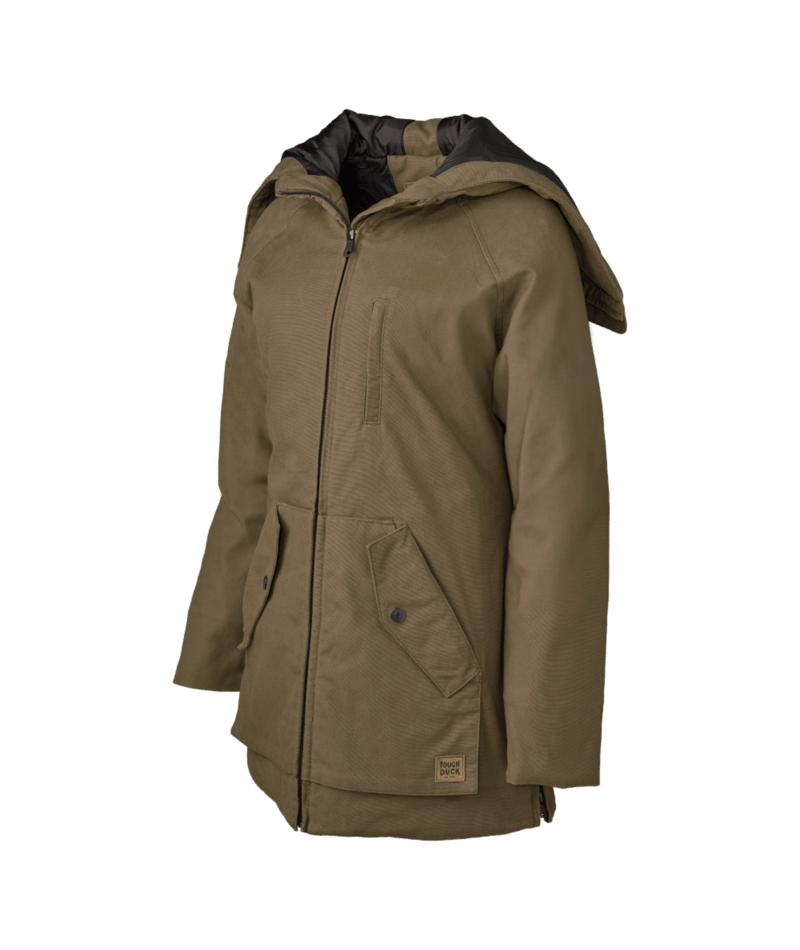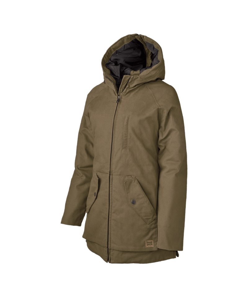 Built warm, built tough, built for her. This women’s lined duck parka combines rugged 10 oz sanded duck with quilted 6 oz insulation and a convertible hood that zips down to collar.
