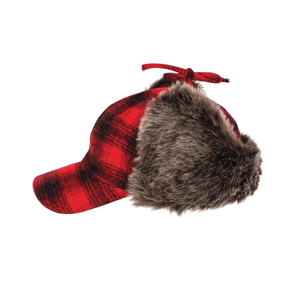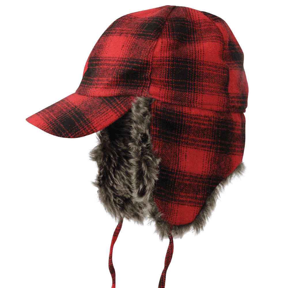 - 95% Polyester/5% Wool- 100% Polyester lining- Faux fur trim ear flaps- Adjustable chin ties- Ear flaps can be worn up or down
